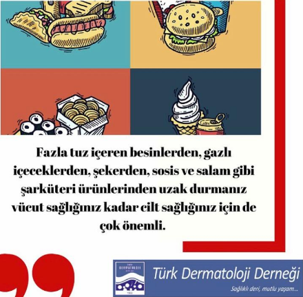 Cilt ve vücut sağlığınız için; aşırı tuzlu yiyeceklerden, gazlı içeceklerden, şekerden, sosis ve salam gibi şarküteri ürünlerinden uzak durmamız gerekir.
